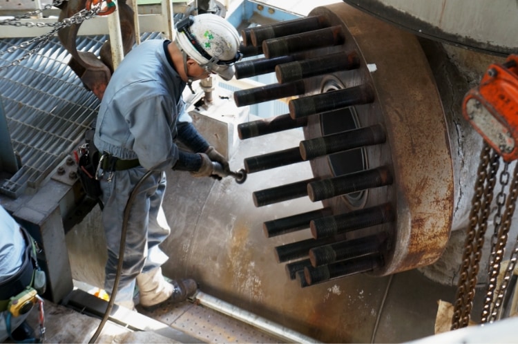 高温高圧バルブってのは流体が漏れないように配管との接続は溶接でしちゃう。だから一度取り付けたら取り外すのは難しくて、工場に持ち帰っての点検とか修理はできないから、俺らは全国9カ所の拠点から日本中、ときには海外のプラントまで出向いて現地で工事をするんだよ。