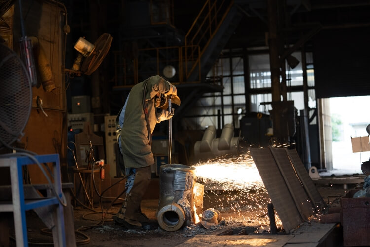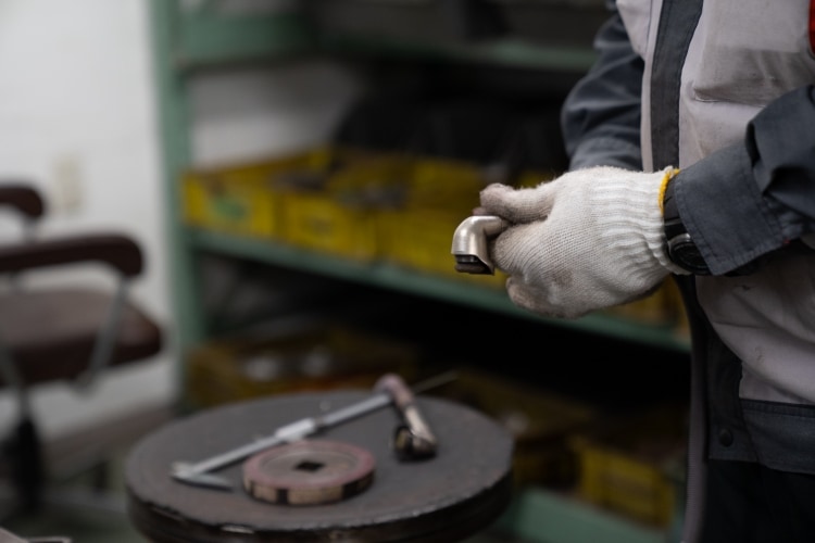 例えば、「品質は素材から」とOKANOでは鋳鋼を自社で行う。クロムやモリブデン、ニッケルなど添加物のバランスを当日の気温、湿度に合わせてコントロールして、数回の試行から最適な組み合わせを見出す。OKANOのお家芸のステライト溶接では、常人には見分けのつかない約3600℃の心炎、約2500℃の還元炎、より低い酸化炎を使い分け、ステライトを溶着していく。仕上げでは、1000分の1ミリという精度を出すラッピングシートをつけた器具で作業を行う。
