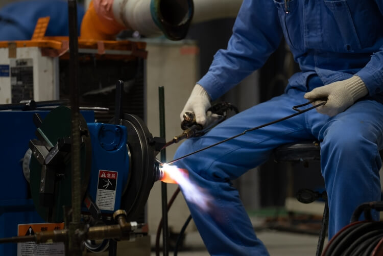 物理と向き合うOKANOの製品は誤魔化しが効かない。高温高圧の流体は誤魔化しの隙間に必ず浸透してくる。だからものづくりの現場では、熟練工は常に真剣勝負で妥協せずに製品を作りこんでいるし、若手や新人にも叩きこむのはまずこの部分です。1人1人がものづくりに妥協しないからこそ、OKANOの品質が保たれていると思っています。例えば、現場には「梅雨時は不良品が多い」という伝承があるんだけど、気象条件の少しの変化が製品に影響を及ぼすんです。ステライトの溶接では、「汗をかく」という言い方をするけど、普通の人じゃ絶対に解らない、金属を加熱して表面が薄っすら濡れたように見える状態、ここを見分けて溶接をしていく。溶接の炎も製品の形状や周囲の温度も踏まえて使い分けていく。製造業の現場見学は、だいたいどこも写真撮影はNGにしていて、うちも昔はNGだったけど、よく考えたら何を隠してるんだろうって思い、今は好きなだけ撮影してもらっています。写真や動画くらいで盗める技術は技術って呼ばないという自負があるから。