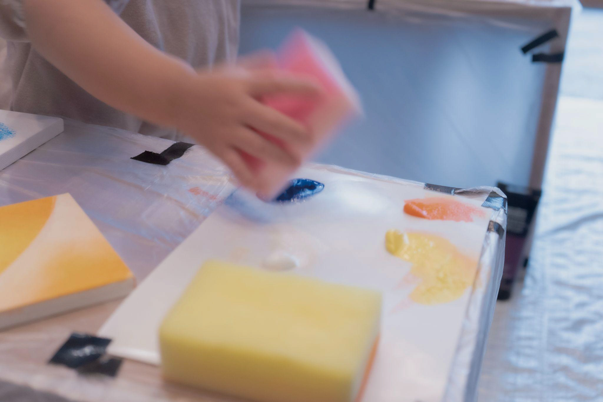 ヤンさんをゲストに迎え、作品展示とワークショップを行いました。「絵なんて久しぶりに描いたけど、楽しかったです」という言葉や、「この子、絵を描くのが好きだけどいつも家では裏紙に書いてるので、キャンバスにかけて嬉しそうです」という言葉を参加者の方からいただいたり、大人も子供もみんなが手を汚しながら夢中で描く顔を見ていて、企画者としてとても幸せなひとときでした。
