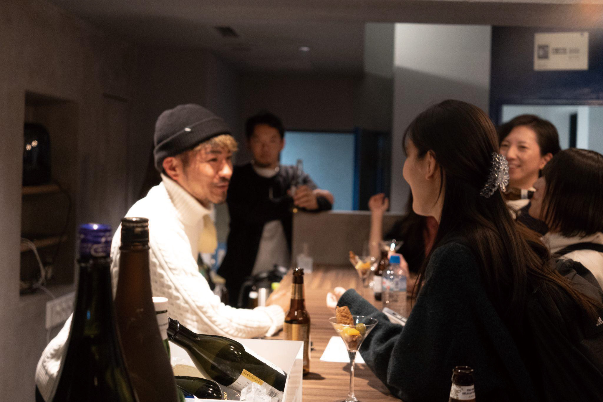 トークイベントゲストであるRyoさんとAkinaさんが1日限定でママを務めるソーシャルバー“ノマド”が開店。トークイベントに参加した方や、海外ノマドのメンバーも参加して賑わいました。またS-TOKYOのコンセプトである「一つの場所にとらわれず、軽やかに都市や地域を行き来するノマドのためのコミュニティ」を表現したシンボルが、アーティストのヤンさんのライブペインティングパフォーマンスで描かれました。日本中、世界中の人たちがここS-TOKYOを拠点に文化や価値観が混ざり合う「うねり」という意味が込められています。ぜひS-TOKYOにお越しの際は実物をご覧くださいね。